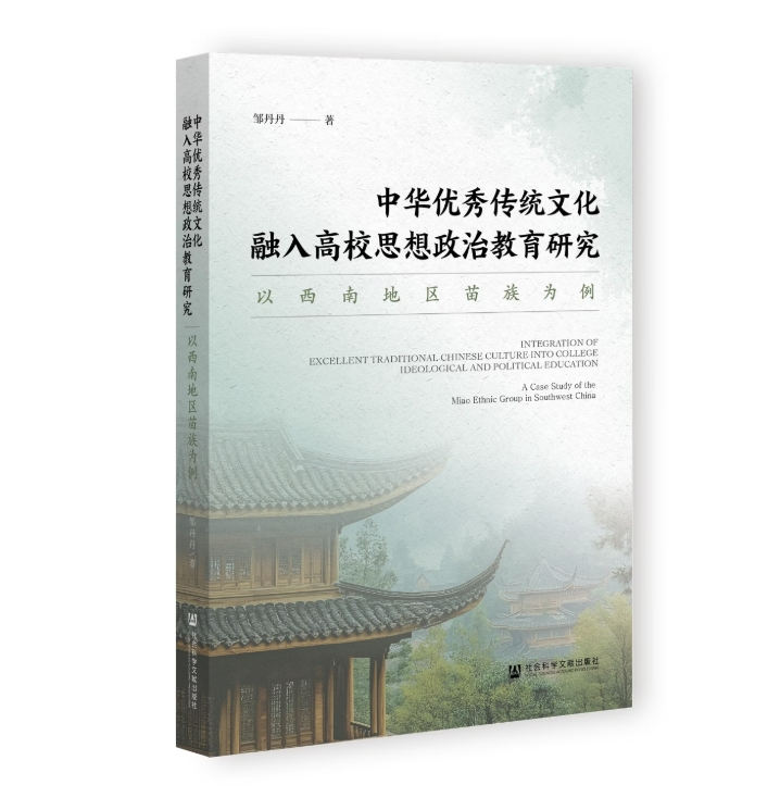 邹丹丹博士在社会科学文献出版社出版学术专著《中华优秀传统文化融入高校思想政治教育研究--以西南地区苗族为例》。中华优秀传统文化是中华民族共有的物质财富与精神财富的总和,苗族优秀传统文化是中华优秀传统文化的重要组成部分。它既保留了鲜明的民族特色,又蕴含着与中华文化一脉相承的精神内核,如勤劳勇敢、团结奋斗、追求和谐等价值理念。本书以西南地区苗族为例,探讨苗族优秀传统文化融入西南地区高校思想政治教育,不仅有助于强化中华民族共同体意识,增强地域特色,还有助于推动民族地区思想政治教育的创新和发展。